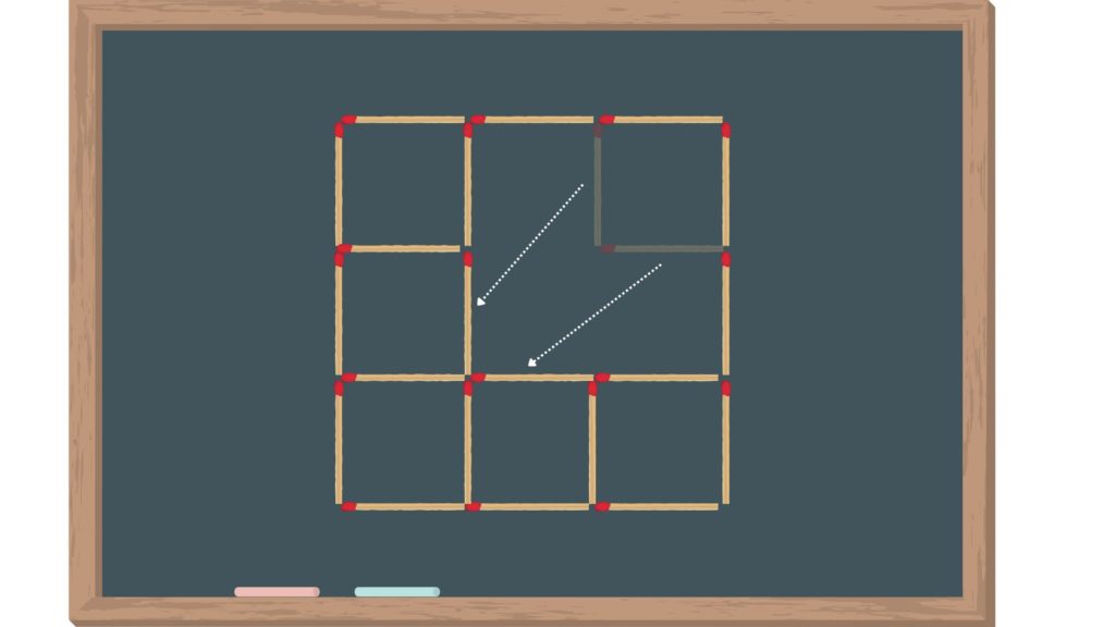 マッチ棒を2本だけ動かして、正方形を7つにしてください。