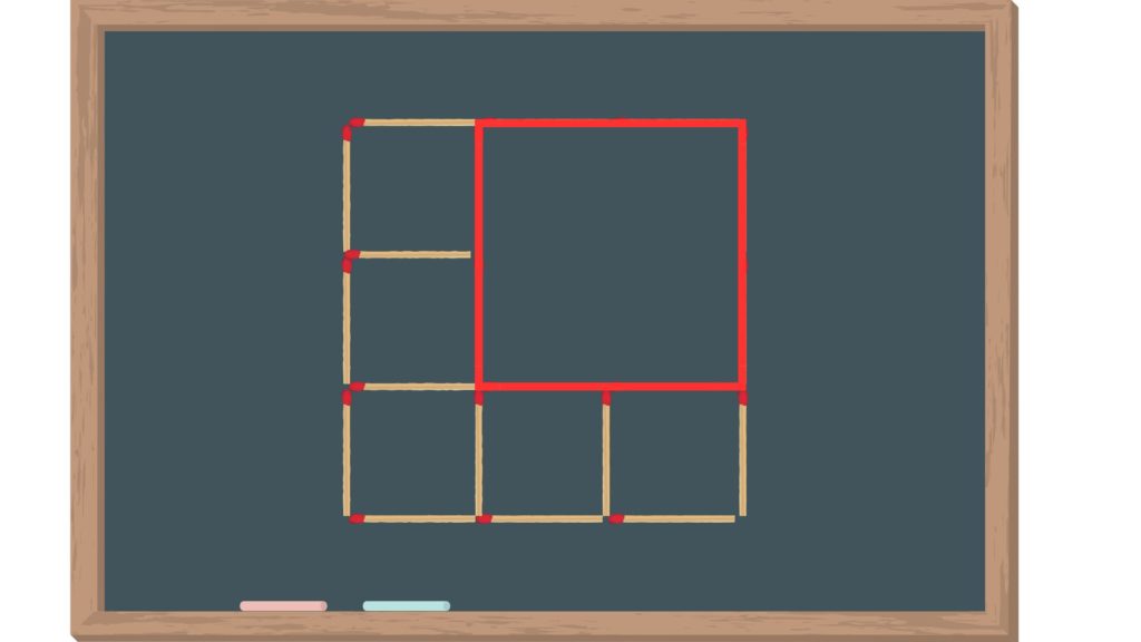 このように動かすと、小さい正方形が5つ、中くらいの正方形が1つ、大きい正方形が1つの合計7つの正方形が出来上がります。