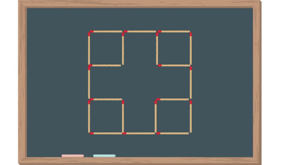 マッチ棒を2本だけ動かして、正方形を7つにしてください。
